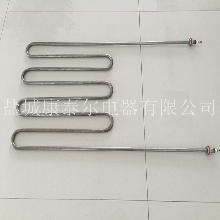 (3)干燒 空氣干燒的電加熱管我們一般按照1-1.5KW的每米功率來設計。超過這個比例,功率越大加熱管壽命越短。
